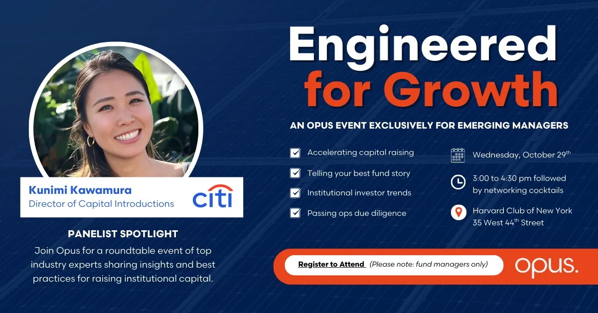 Opus Fund Services is excited to welcome Kunimi Kawamura to our upcoming "Engineered for Growth" event for emerging managers. Kunimi will be joining a roundtable of industry experts, all sharing their insights and best practices for helping funds of all strategies to tell their best stories and attract institutional capital.